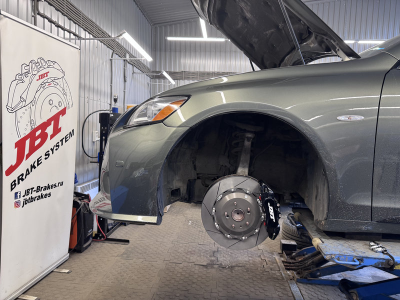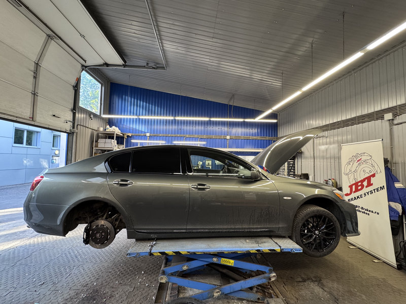 Тормоза JBT для люксового бизнес-седана Lexus GS350 III рестайлинг: привет из «уходящей эпохи ДВС».После недолгого перерыва, вызванного летним отпуском, мы снова возвращаемся на странички нашей любимой рубрики. В этот раз героем нашего рассказа будет люксовый японский бизнес-седан Lexus GS350 III рестайлинг. Традиционно покопавшись в нашей автолетописи, мы обнаружили единственный проект с GS III с фотоотчетом об установке тормозов JBT, случившийся еще до 2020 года. Так что у нас сегодня премьера текстового отчета конкретно на GS350! Краткая история модели. Lexus GS — японский седан бизнес-класса, выпускавшийся люксовым подразделением автомобильной корпорации Toyota Motor Corporation в 4-х поколениях с 1991 по 2020 год; задний и полный привод, бензиновые и гибридные версии. Модель занимала промежуточную нишу между младшей серии Lexus IS и флагманской линейкой Lexus LS. Модели с индексами GS 300, GS 350, GS 400, GS 430 и GS 460 оснащались бензиновыми двигателями объёмом 3,0, 3,5, 4,0, 4,3 и 4,6 литра соответственно. GS 450h имела гибридную силовую установку на базе 3,5-литрового бензинового двигателя. Некоторые модификации Lexus GS: История данной модели насчитывает почти 30 лет. Но, если первые два поколения бизнес-седанов Lexus GS350 «ушли» практически полностью, то последние 2 (3-е и 4-е) еще можно встретить на российских дорогах. А вот в продаже их найти сложнее, так как по своему техническому уровню, оснащению и содержанию они остаются вполне современными, и их владельцы в условиях кратного подорожания новых автомобилей естественно не хотят расставаться со своими любимыми детищами. В нашем проекте принял участие представитель 3-го поколения Lexus GS III 350 рестайлинг 2007–2012 годы выпуска. Приведем основные характеристики автомобиля в модификации 3,5 AT: Его динамические характеристики по-прежнему одни из лучших в классе. В процессе активной эксплуатации тормозные диски быстро перегреваются и теряют свою эффективность, что сопровождается неприятным биением в руль. Все попытки решить вопрос малыми вложениями будут обречены на провал, поэтому наш клиент, после долгих мытарств, решился на кардинальные меры — полную замену тормозной системы на комплект JBT. Передняя ось 355х6: Задняя ось 355х4:
