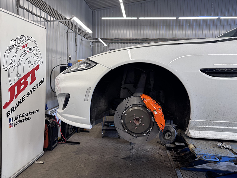 Установка тормозов JBT на классический спорткар - купе Jaguar XKR II рестайлинг I: момент наступил…Что-то в последнее время в сервисный центр нашей компании «поехали» премиум-автомобили от различных европейских грандов. Примечательно, что все они выпущены задолго до 2022 года, когда официальные поставки в нашу страну были прекращены в связи с известными событиями в соседней стране. Этим машинам, в среднем примерно 10-15 паспортных лет, они уже с приличным пробегом, но, как правило, в хорошем состоянии, благодаря неусыпной заботе своих хозяев. Правда, за такое время эксплуатации без системной поддержки от производителя их штатные тормозные системы в связи с естественным износом приходят в негодность, и встает вопрос их замены.